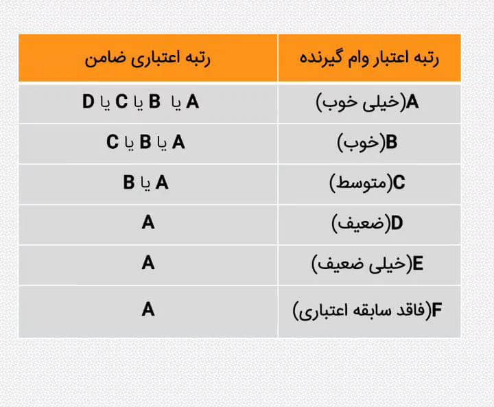 وام گیرنده یا ضامن باید یکیشون دارای رتبه A یا B باشد .دقت فرمایید شغل ضامن ملاک نیست و فقط رتبه اعتباری ملاکه